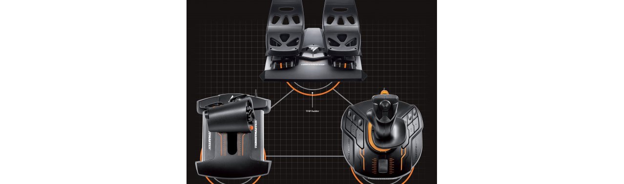 Система T.16000M FCS HOTAS состоит из летного джойстика T.16000M FCS (Flight Control System), рычага управления TWCS (Thrustmaster Weapon Control System) и педального руля направления TFRP (Thrustmaster Flight Rudder Pedals).